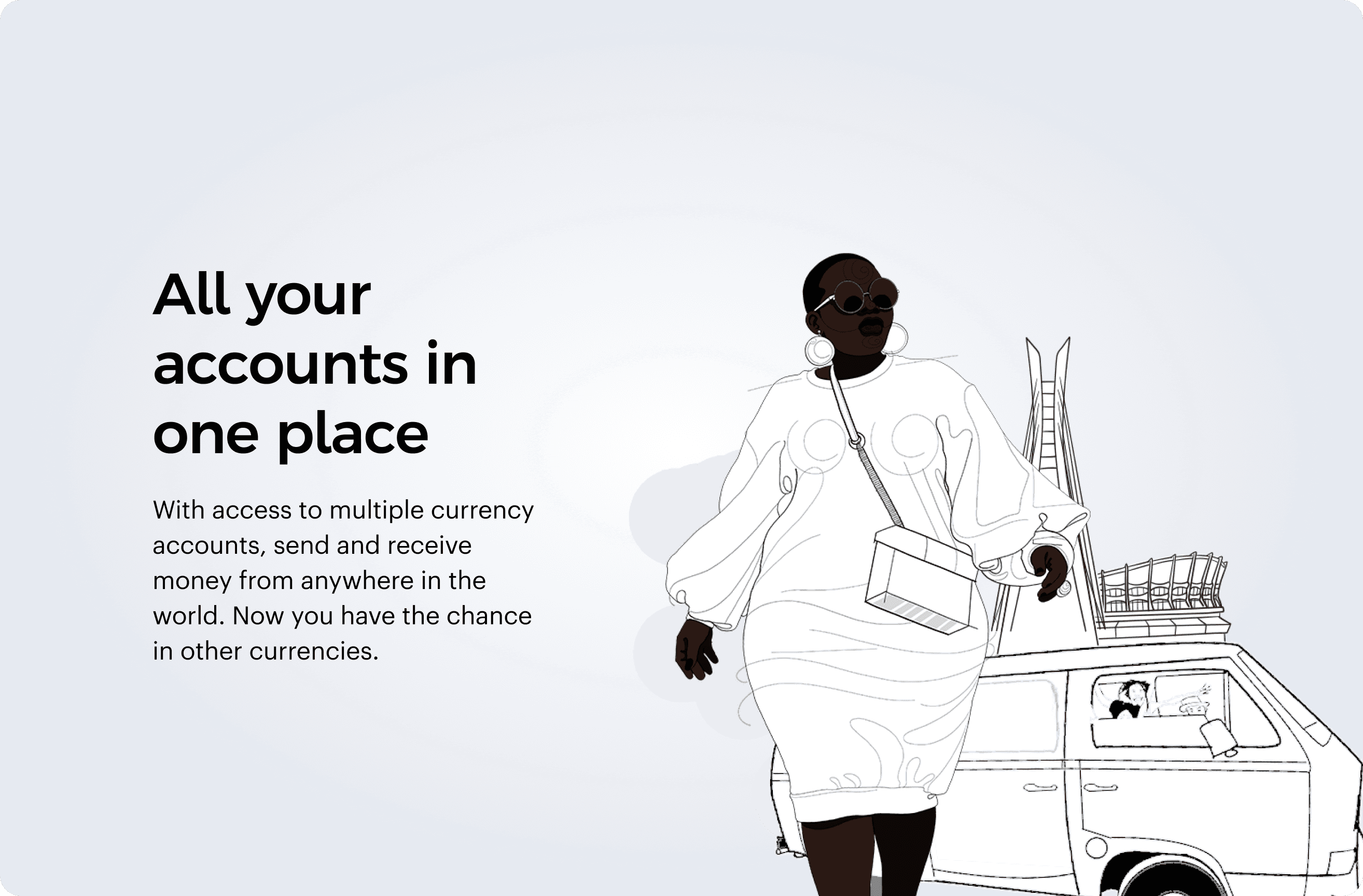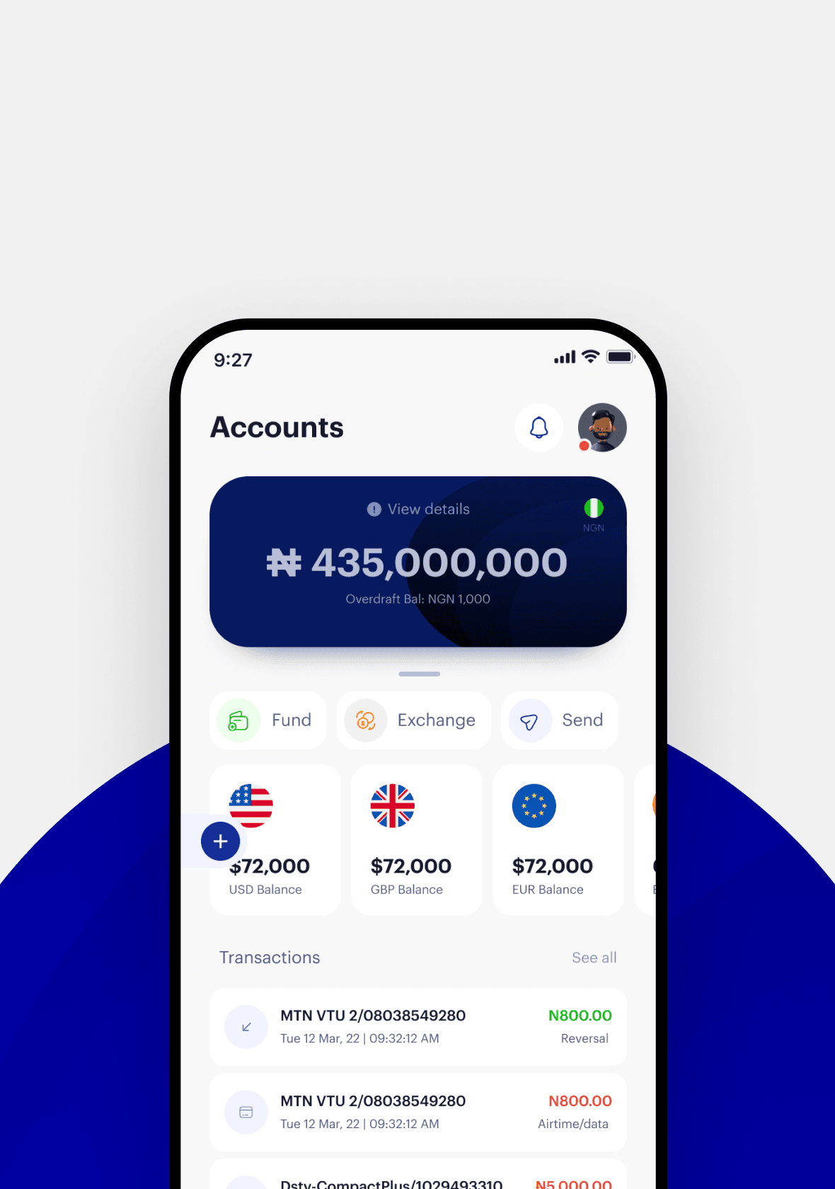 Build a platform that feels as good as it functions. Give users access to multi-currency accounts, savings, debit and credit cards, and soft loans, all through an interface that's clean, intuitive, and built to scale.